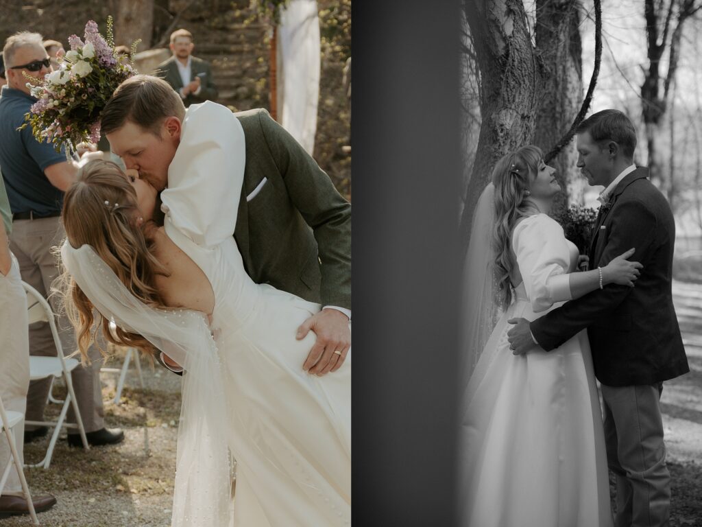 One of my favorite details from their day? They thrifted every dish at the head table for their reception. Every plate was different, and together it created this cozy, personal vibe that fit them perfectly. It’s little touches like that that make a wedding day feel so unique and intentional. From behind the camera, it was such a joy to capture the way these two looked at each other, how their friends and family leaned in with smiles and laughter, and just the overall warmth of the day.